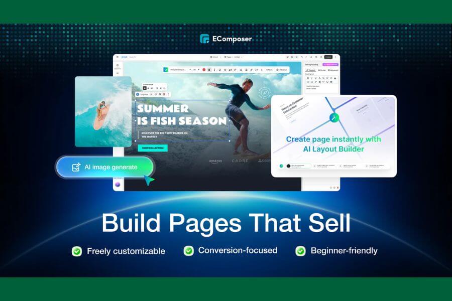 EComposer Landing Page Builder helps Shopify stores boost sales with AI-powered upsell and cross-sell tools. Design any page: landing, product, collection, cart, or blog using drag-and-drop, 300+ high-converting templates, and customizable sections. Add cross-sell and upsell widgets, popups, and product recommendations to increase average order value effortlessly. With built-in CRO add-ons, smart AI layout tools, and analytics, EComposer lets you create stunning, sales-ready pages without coding while optimizing every page to convert visitors into higher-value buyers.