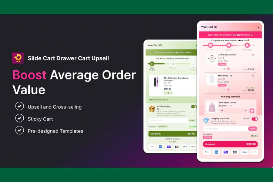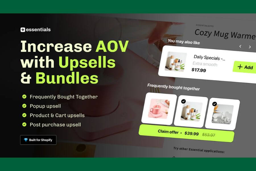 Essential Upsell & Cross Sell helps Shopify store owners boost sales with one-click upsells and cross-sells. Showcase frequently bought together (FBT) items, related products, and personalized recommendations on product pages and cart drawers. Create effective upsell strategies with product bundles, “buy X get Y” offers, post-purchase discounts, and automatic promotions. Add one-click upsell widgets, product add-ons, and BOGO deals to increase average order value. Turn every visit into a conversion with smart, easy-to-implement upsell and cross-sell solutions.