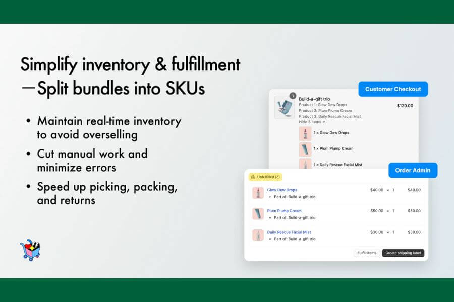 Simple Bundles & Free Gift helps Shopify stores boost average order value with flexible upsell and cross-sell bundle options. Create Mix & Match bundles, BOGO free gifts, subscription bundles, volume discounts, and custom multi-SKU bundles to encourage additional purchases. Seamlessly integrate with POS, ERP, WMS, and 3PL for real-time inventory sync and order fulfillment. Showcase upsell bundles on dedicated landing pages, track performance with advanced analytics, and bypass Shopify’s variant limits, turning every customer interaction into a higher-value sale.